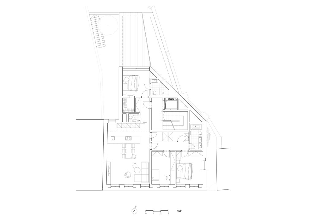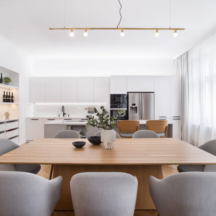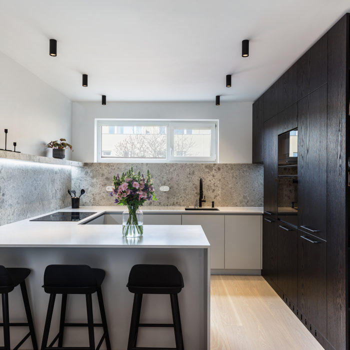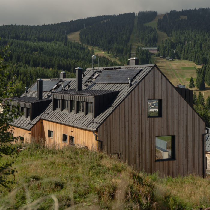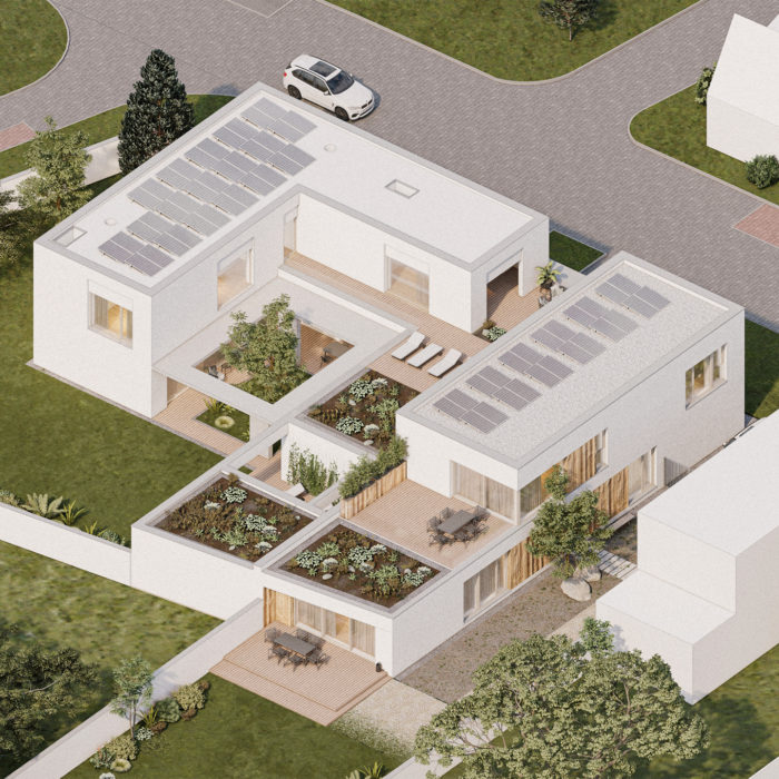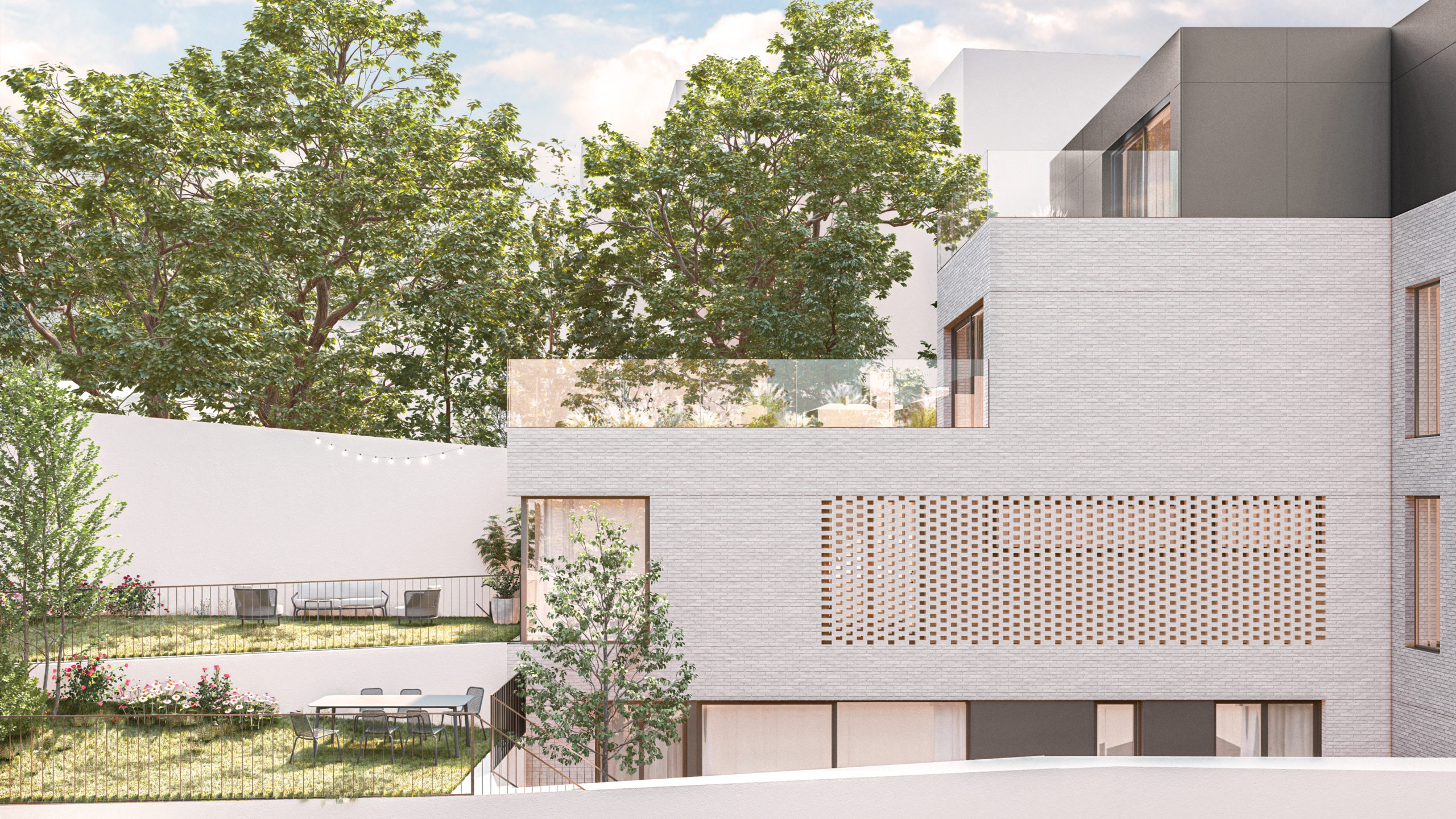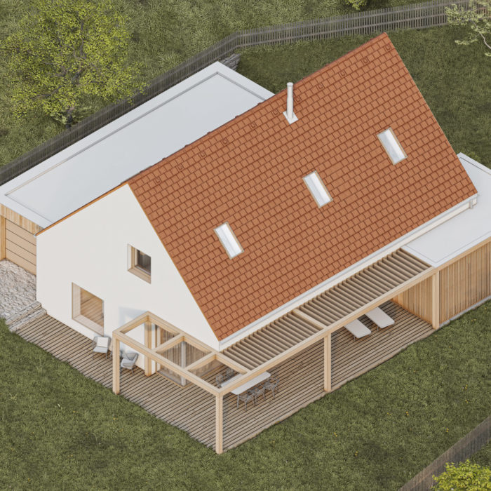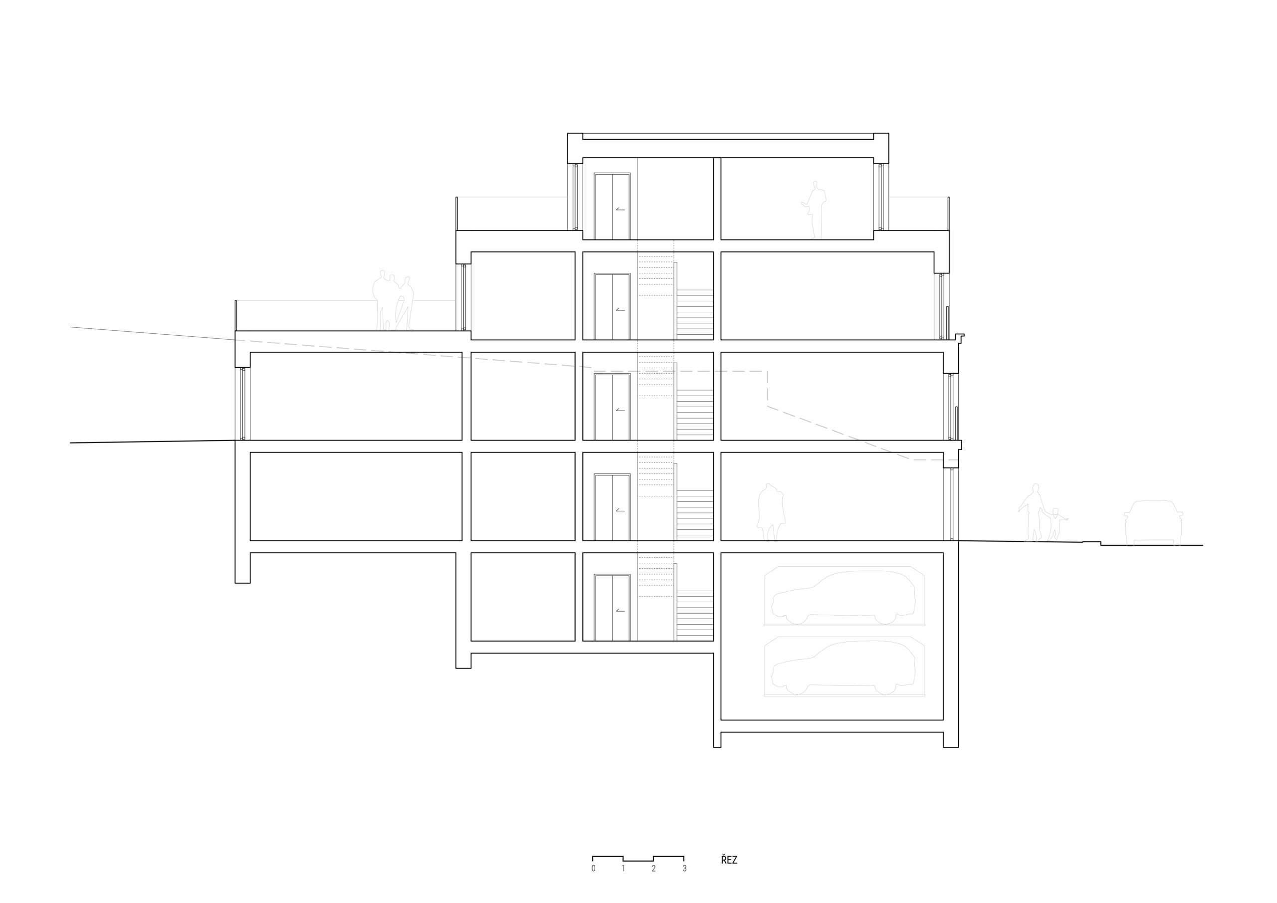 The design of a five-unit apartment building in Prague 6 fills a gap in Wolkerova Street, a site that was previously built up. The building is located in an urban area with diverse surrounding development, and its massing and expression respond to the character of the place. The individual floors are slightly set back so the house does not feel heavy and fits naturally into the street frontage. Emphasis was placed on the symmetry of the front façade, on referencing the historic context, and on ensuring that each apartment has its own outdoor space in the form of a terrace.